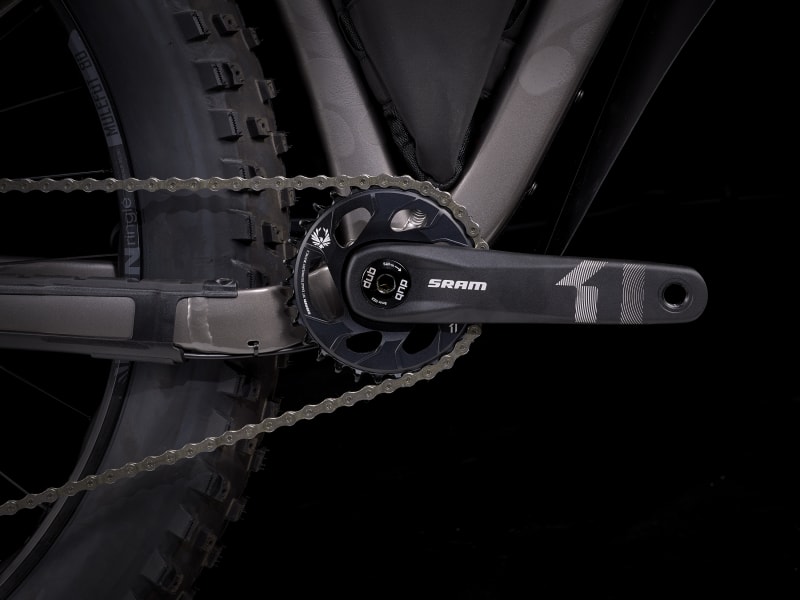 A rugged alloy frame with progressive trail geometry that's built to handle it all. Huge 4.5-inch tires that keep you floating over snow, sand, mud, and dirt. A carbon fork with a sleek design and plenty of mounts for loading up with racks and bags. An internally routed travel dropper post that lets you get behind the saddle on descents. A 12-speed SRAM GX Eagle drivetrain with a big cog for taking the sting out of steep climbs when your bike is fully loaded. Plus, all of the racks and bags your heart could desire for loading up and heading out on big trips.