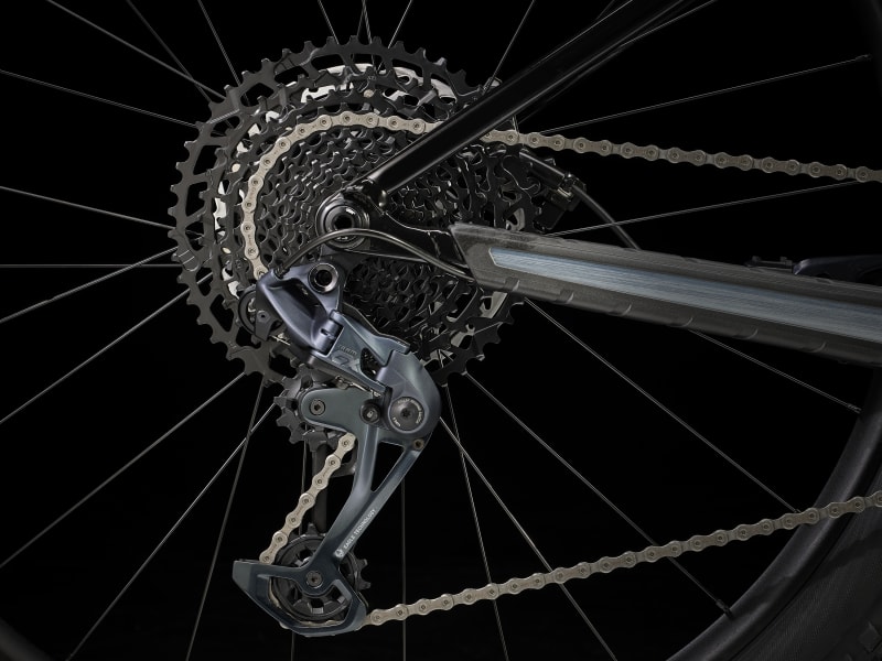 A lightweight aluminum frame, a 140mm RockShox 35 Gold fork with a lockout, a SRAM NX Eagle 1x12 drivetrain with a wide range of gears for climbing, powerful 4-piston brakes, and a dropper post for room to move around on the bike on descents, corners, and jumps. Plus, fast-rolling 29er wheels with a 108-tooth Rapid Drive hub for instant engagement, and wide, grippy 2.6" tires.