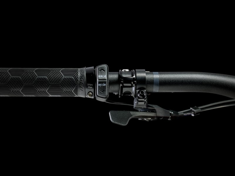 An Alpha Platinum Aluminum frame with TQ's HPR50 harmonic pin ring drive system, a fully-encased 360Wh removable battery, and smart charging port. An integrated LED display and handlebar remote that are easy to use on the fly. 150mm FOX Rhythm 36 front suspension with Float EVOL air spring and GRIP damper, and 140mm FOX Performance Float X rear suspension. Plus, wide, Tubeless Ready Bontrager Line Comp 30 wheels, SRAM's wireless 12-speed GX AXS transmission, hydraulic disc brakes, and a dropper post.