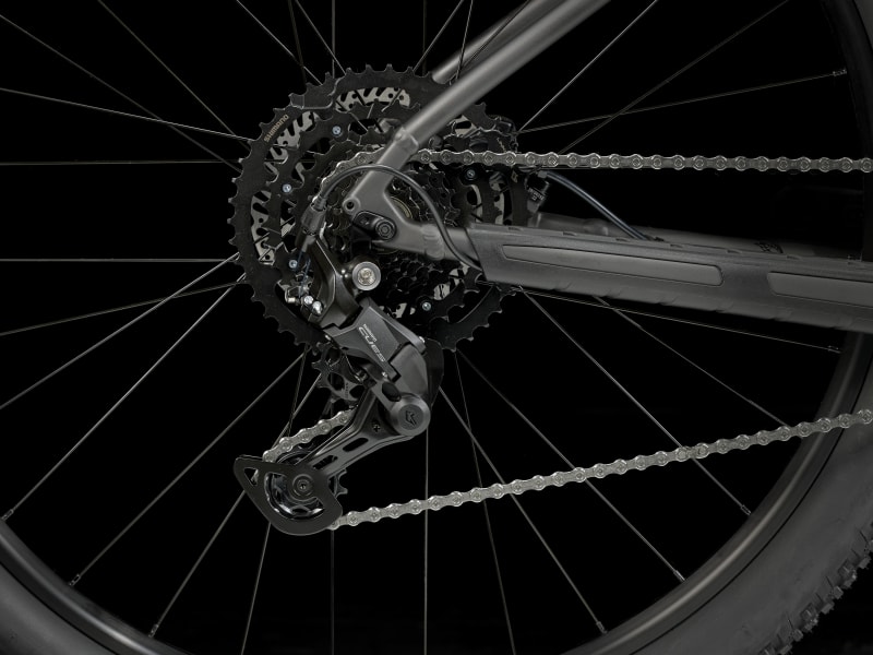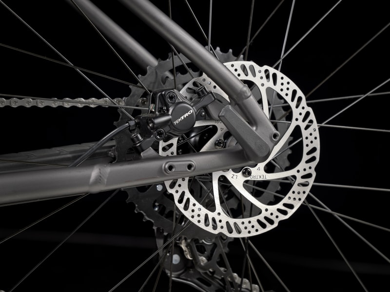 A lightweight aluminum frame with internal routing to protect your cables and add to the bike's sleek look, an upgraded 9-speed Shimano CUES drivetrain, a wide range of gearing so you always have the right gear for your terrain, powerful hydraulic disc brakes, and a terrain-smoothing suspension fork with a lockout.