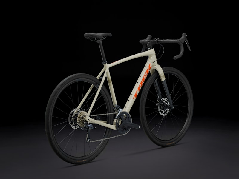 A responsive 300 Series Alpha Aluminum frame, hidden cables that won't interfere with bags, integrated rack, fender, and frame bag mounts, a 2x9 Shimano Sora drivetrain for smooth shifting on punchy climbs and variable terrain, mechanical disc brakes for ease of stopping quick in all conditions, tubeless ready rims, and wide Bontrager Girona Pro 700x42c gravel tires for added comfort and traction.