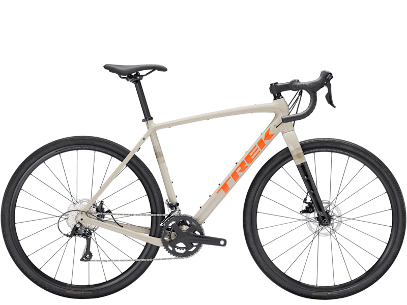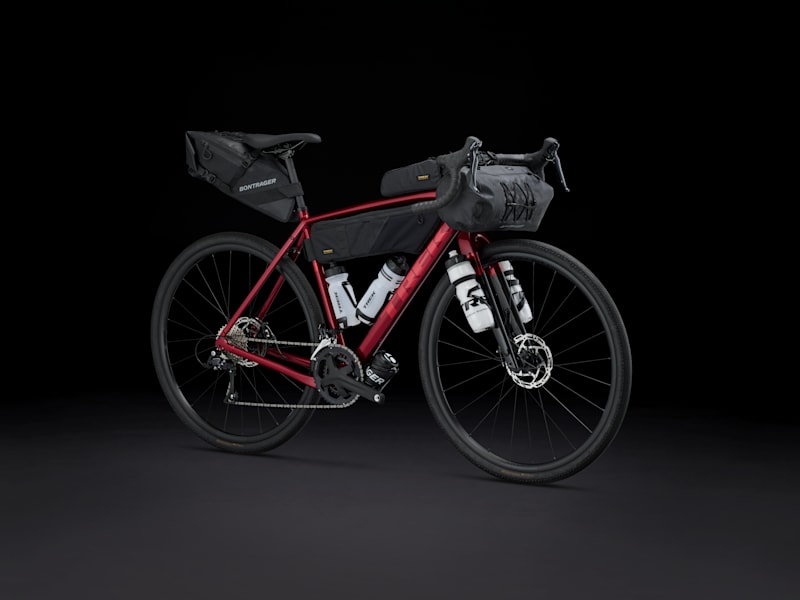 A responsive 300 Series Alpha Aluminum frame, hidden cables that won't interfere with bags, integrated rack, fender, and frame bag mounts, a 2x9 Shimano Sora drivetrain for smooth shifting on punchy climbs and variable terrain, mechanical disc brakes for ease of stopping quick in all conditions, tubeless ready rims, and wide Bontrager Girona Pro 700x42c gravel tires for added comfort and traction.