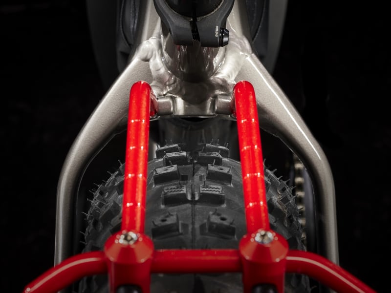 A rugged alloy frame with progressive trail geometry that's built to handle it all. Huge 4.5-inch tires that keep you floating over snow, sand, mud, and dirt. A carbon fork with a sleek design and plenty of mounts for loading up with racks and bags. An internally routed travel dropper post that lets you get behind the saddle on descents. A 12-speed SRAM GX Eagle drivetrain with a big cog for taking the sting out of steep climbs when your bike is fully loaded. Plus, all of the racks and bags your heart could desire for loading up and heading out on big trips.