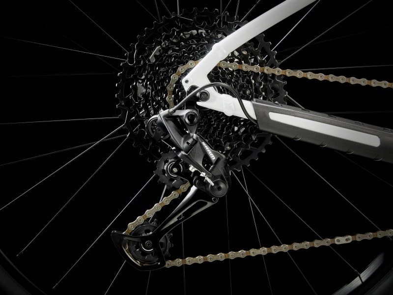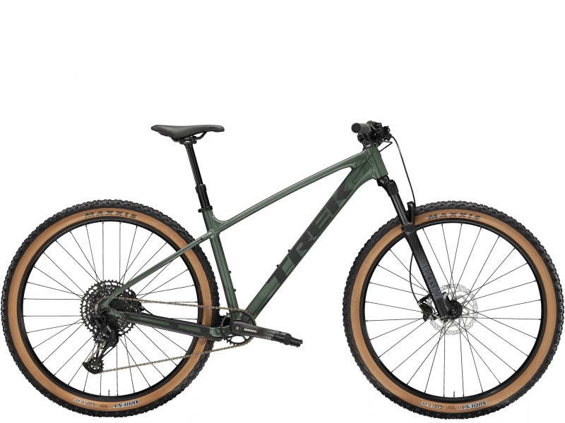 A lightweight aluminum frame with modern trail riding geometry and internal routing that keeps cables protected and the bike looking sleek. An upgraded RockShox suspension fork smooths out rowdy trails, 12-speed SRAM SX Eagle shifting, and the serious stopping power of hydraulic disc brakes.