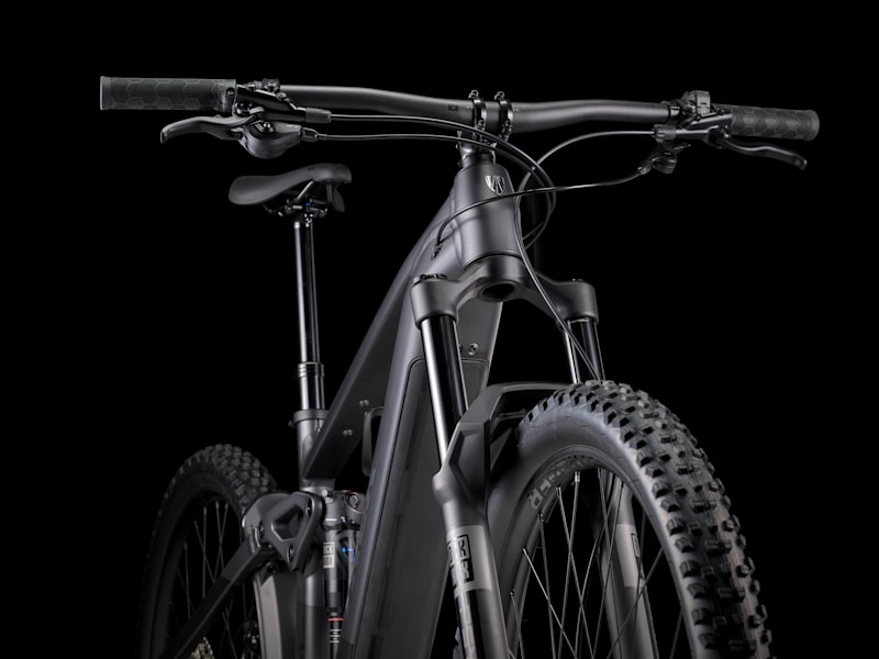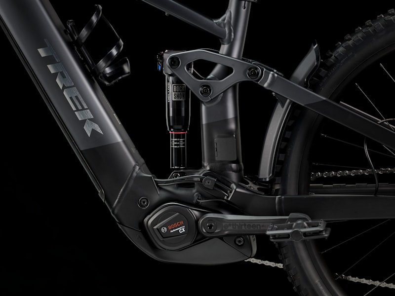 An Alpha Platinum Aluminum frame with a Bosch Performance CX system (85Nm, 250W), and 800Wh Removable Integrated Battery 2.0. A 160mm RockShox 35 Gold RL fork with DebonAir spring, Motion Control damper with lockout, and a RockShox Deluxe Select+ RT shock. All topped off with a Shimano Deore 12-speed drivetrain, dropper post, Tubeless Ready Bontrager Line wheels, and 4-piston hydraulic disc brakes.