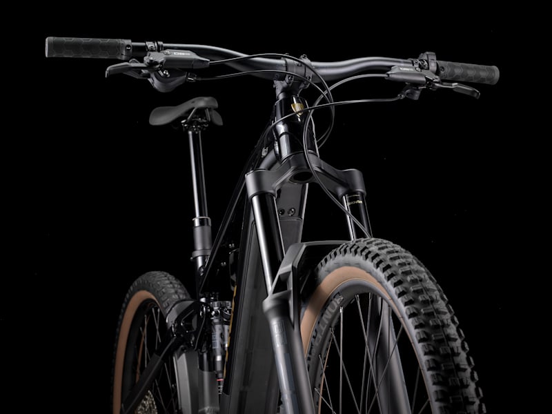 An Alpha Platinum Aluminum frame with a Bosch Performance CX system (85Nm, 250W), and 800Wh Removable Integrated Battery 2.0. A 160mm RockShox ZEB Select fork with DebonAir spring, Motion Control damper and lockout, and a RockShox Deluxe Select+ RT shock. All topped off with a Shimano XT and SLX blended 12-speed drivetrain, dropper post, Bontrager Line Comp 30 Tubeless Ready wheels, and 4-piston Shimano hydraulic disc brakes.