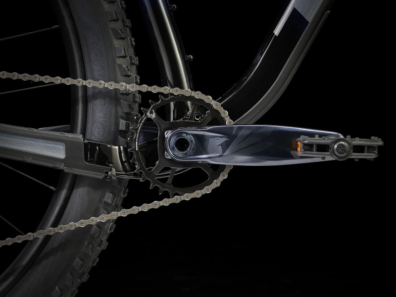 A lightweight aluminum frame, a 140mm RockShox 35 Gold fork with a lockout, a SRAM NX Eagle 1x12 drivetrain with a wide range of gears for climbing, powerful 4-piston brakes, and a dropper post for room to move around on the bike on descents, corners, and jumps. Plus, fast-rolling 29er wheels with a 108-tooth Rapid Drive hub for instant engagement, and wide, grippy 2.6" tires.