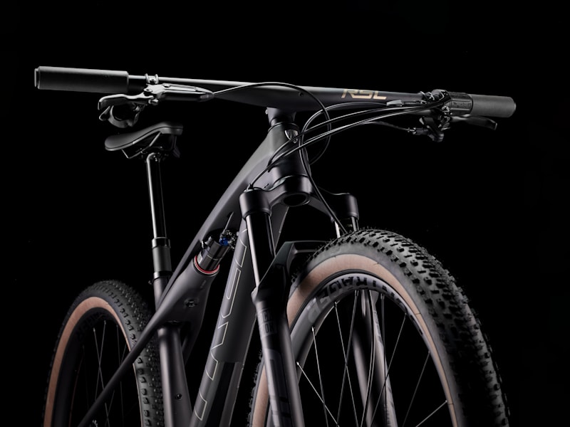 A featherweight, high-modulus SLR OCLV Mountain Carbon frame with modern XC geometry. 110mm of front suspension from a RockShox SID Select+ fork with DebonAir spring and Charger Race Day damper, and 80mm of IsoStrut rear suspension from a RockShox SIDLuxe shock��all with remote lockout. A fully wireless SRAM X0 AXS 12-speed electronic transmission, Bontrager Kovee Elite 30 carbon wheels, carbon Bontrager RSL Integrated bar/stem combo, Bontrager Line dropper post, and SRAM Level Silver 4-piston hydraulic disc brakes.