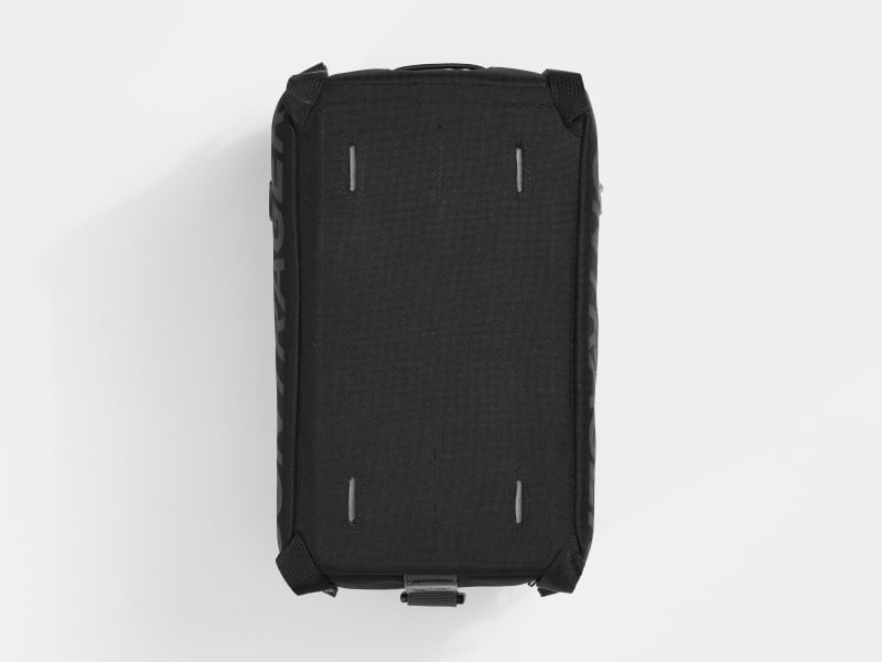 - Securely mounts to a wide variety of rear racks via two hook-and-loop straps
