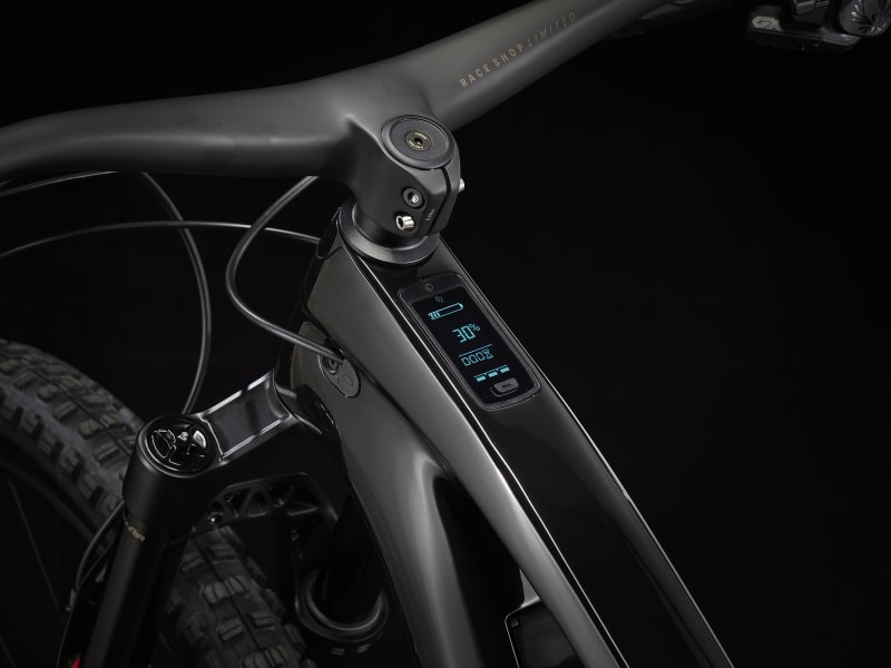 An OCLV Mountain Carbon frame equipped with a fully-encased 360Wh battery and TQ harmonic pin ring transmission with a smart charging port, integrated LED display, and discreet handlebar remote. Plus, a 150mm RockShox Lyrik Select+ fork with DebonAir spring and Charger 2.1 RC damper, and 140mm RockShox Super Deluxe Select+ rear suspension. All wrapped up with the precise shifting and modulation of a Shimano XT drivetrain.