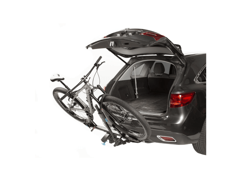 - Folds flat against the vehicle, and tilts down 30 degrees to allow for hatch access