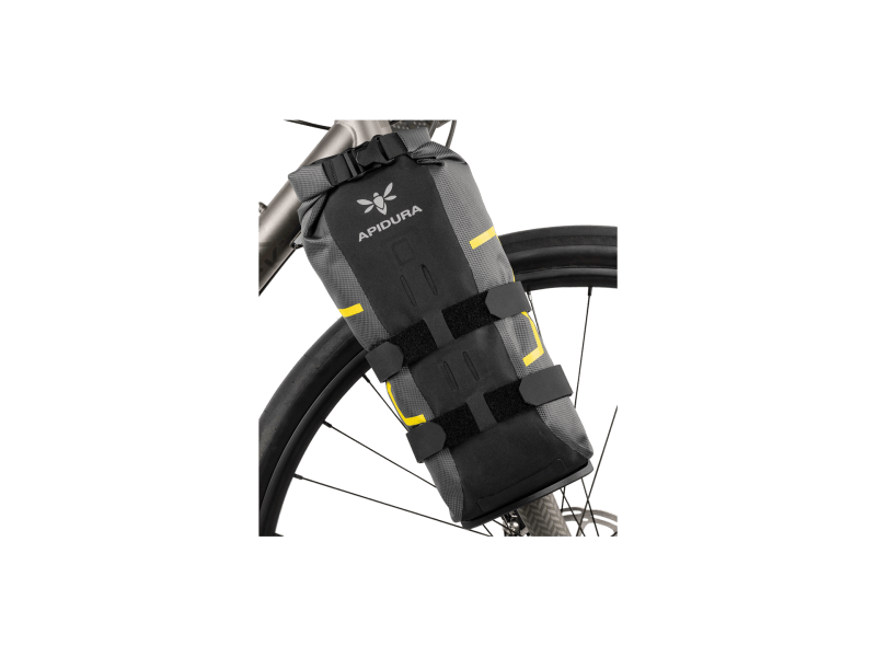 The Expedition Fork Pack is an ultralight waterproof storage space that attaches universally to any fork cage. It is designed for use on any bike with fork bolts, providing extra storage for adventures long and short.