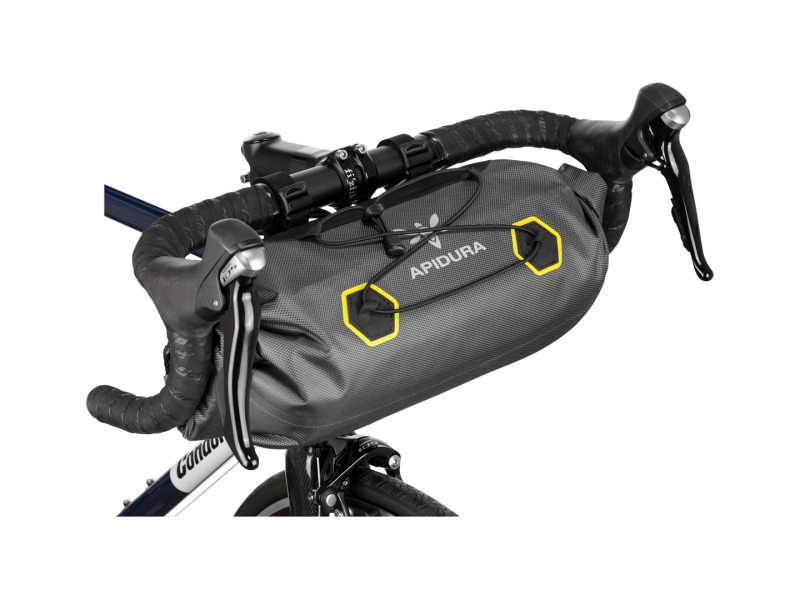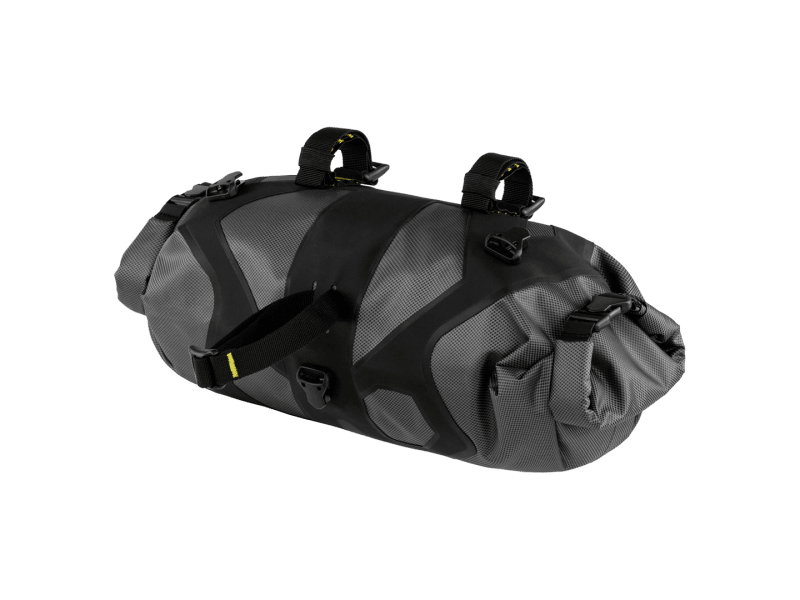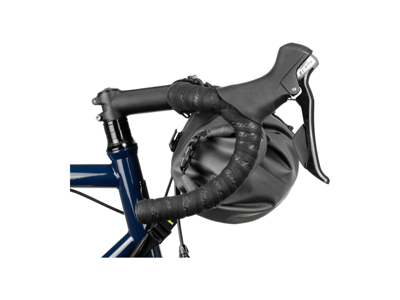 Eliminating the need for a bulky front rack, the Pack fastens to handlebars with a reinforced attachment system that adds stability while improving handling and preventing abrasion.
