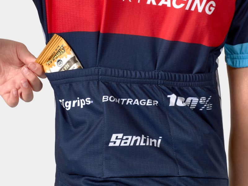 Official team apparel made by Santini with the Trek Factory Racing team logo proudly displayed.