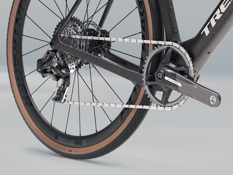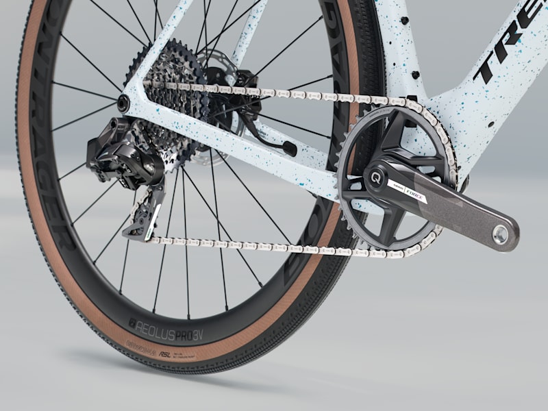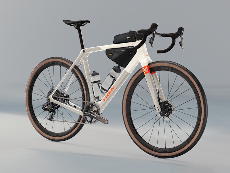 A lightweight and aerodynamic 800 Series OCLV Carbon frame with IsoSpeed comfort technology and plenty of mounts to carry race-day essentials. Bontrager Aeolus Pro 3V carbon wheels and a Trek Aero RSL carbon bar/stem that keep your ride light and nimble. Plus, a SRAM Force XPLR AXS D2 drivetrain with wireless shifting that's built for rougher roads.