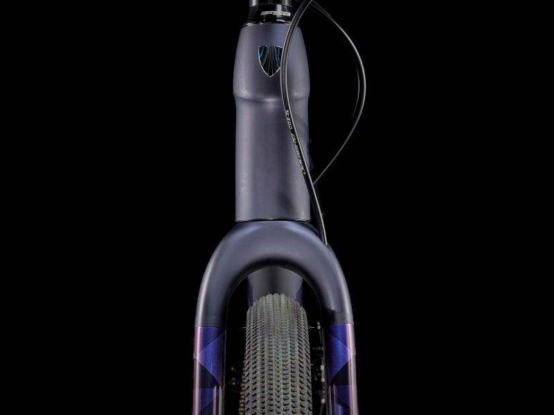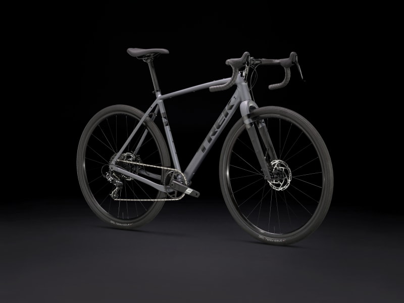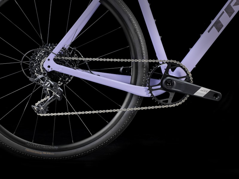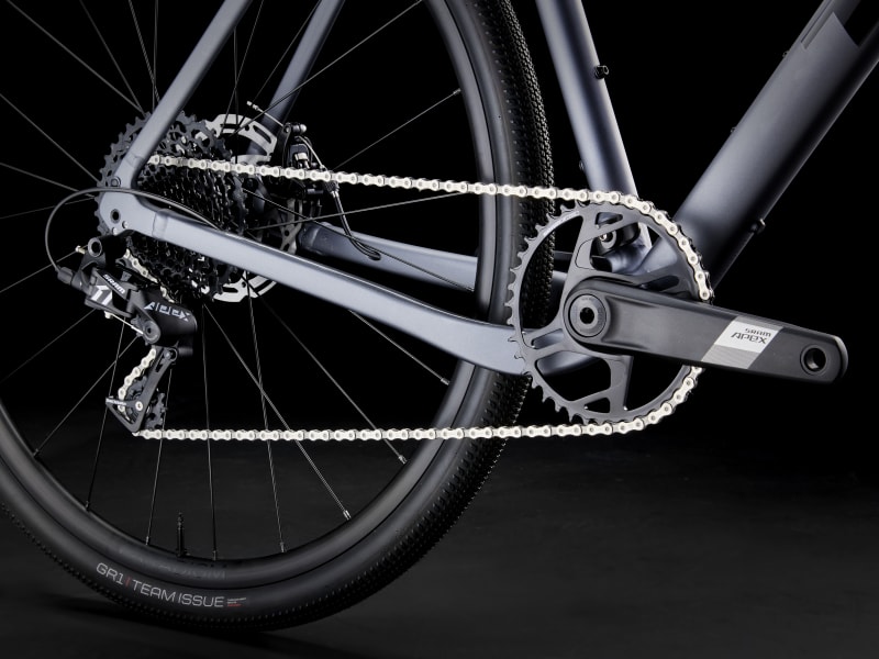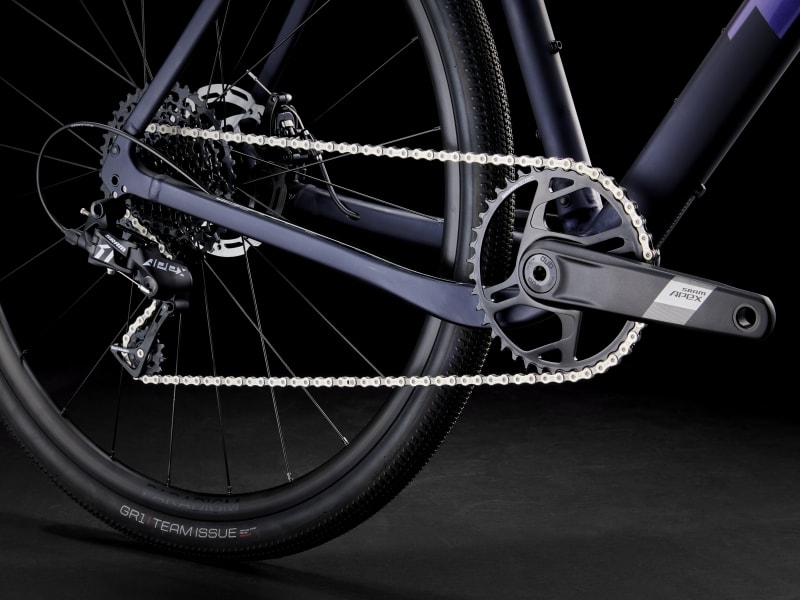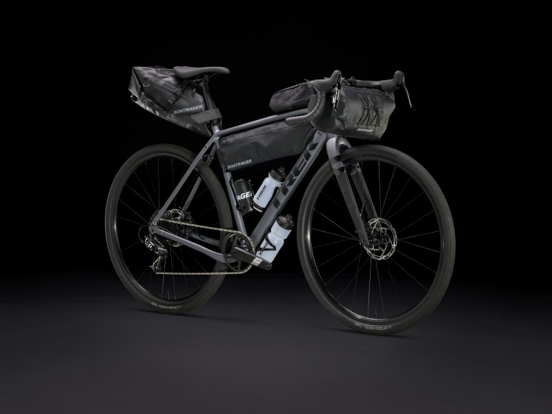 A responsive 300 Series Alpha Aluminum frame, hidden cables that won't interfere with bags, integrated rack, fender, and frame bag mounts, a 1x11 speed SRAM Apex drivetrain for smooth shifting on punchy climbs and variable terrain, mechanical disc brakes for ease of stopping quick in all conditions, tubeless ready rims, and wide Bontrager Girona Pro 700x42c gravel tires for added comfort and traction.