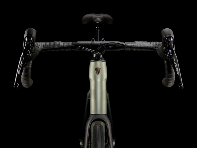 A 100 Series Alpha Aluminum frame with advanced tube shaping for high-end looks and ride quality, a Shimano 105 12-speed groupset, powerful disc brakes for all-weather stopping, super durable wheels, integrated frame mounts for carrying additional gear, and 32mm road tires for added cushion, and flared handlebars for extra control and stability.