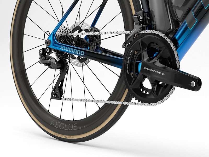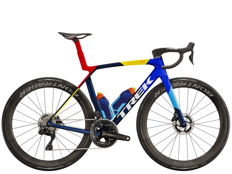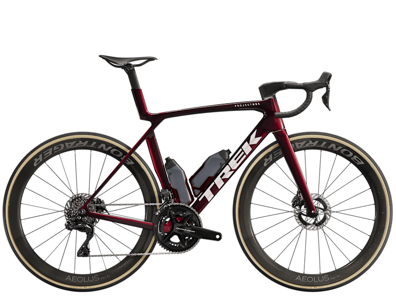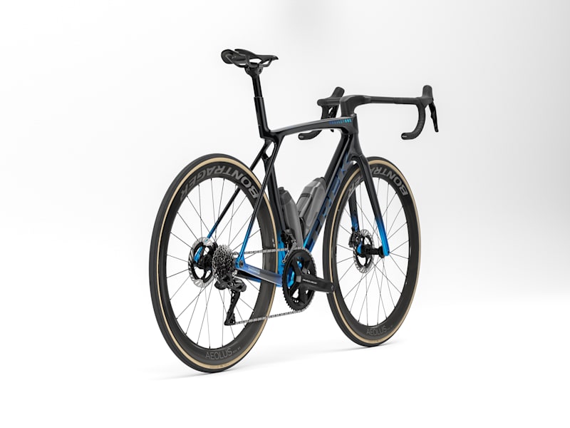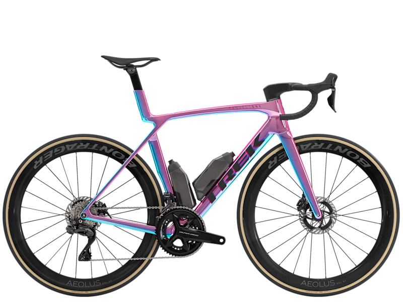 An insanely light frame made of our highest-level 900 Series OCLV Carbon with aero tubing and IsoFlow comfort technology, and RSL Aero Bottles and Cages that save watts. Shimano's top road groupset �� Dura-Ace Di2, for lightning-fast shifts that you can customize. A universal derailleur hanger so you can get a replacement anywhere. Plus, it's topped off with Bontrager Aeolus RSL 51 tubeless carbon wheels and a Trek Aero RSL one-piece bar/stem.