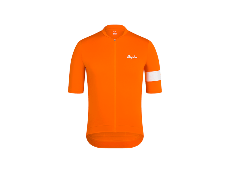 Rapha's Core Jersey delivers a winning blend of performance, comfort, and value for the everyday cyclist with a close yet unrestrictive fit, breathable comfort, and Rapha's signature armband to complete a simple, refined look.