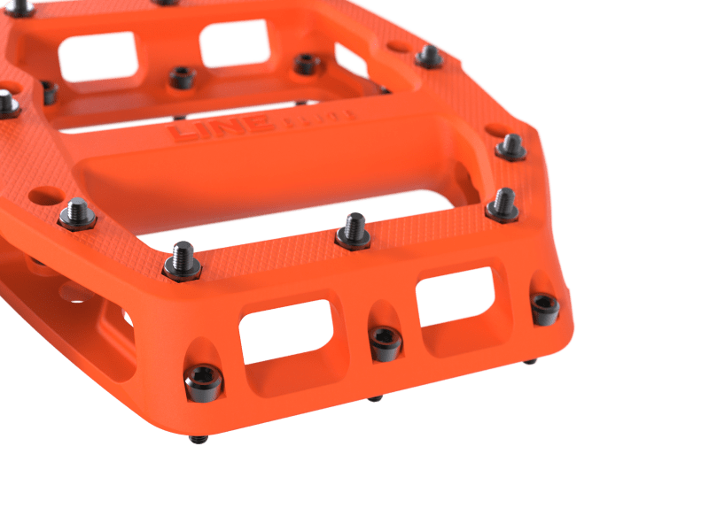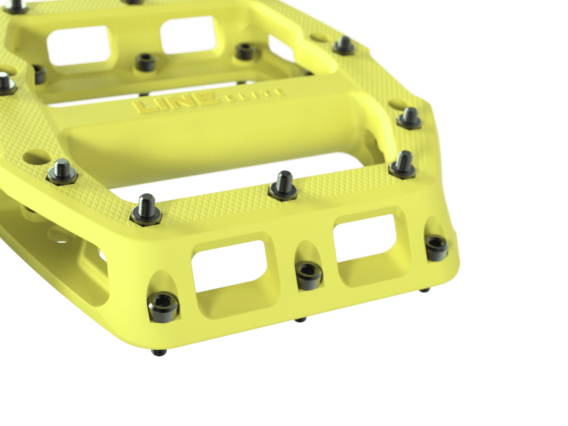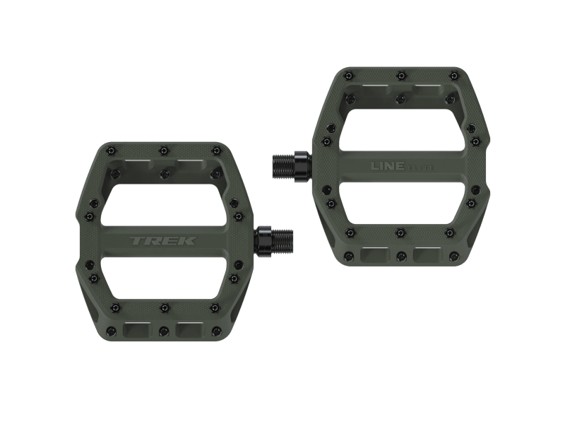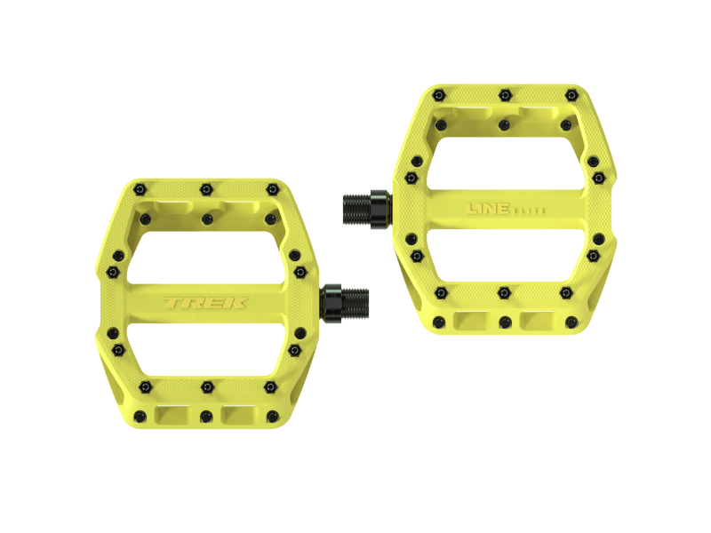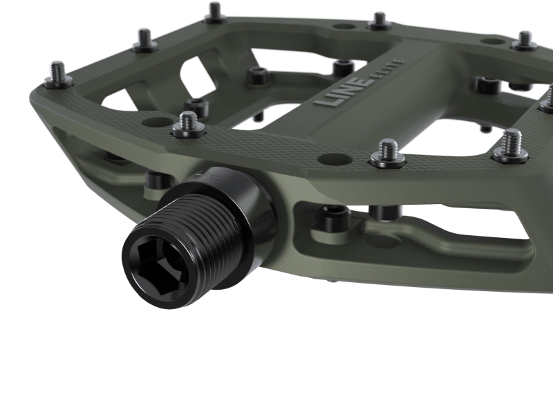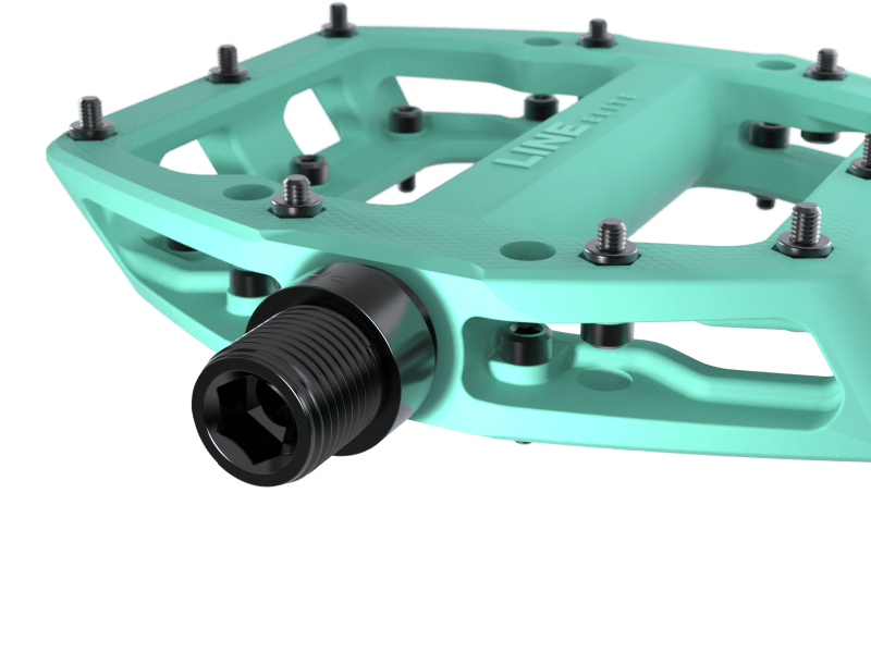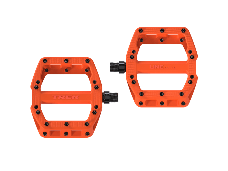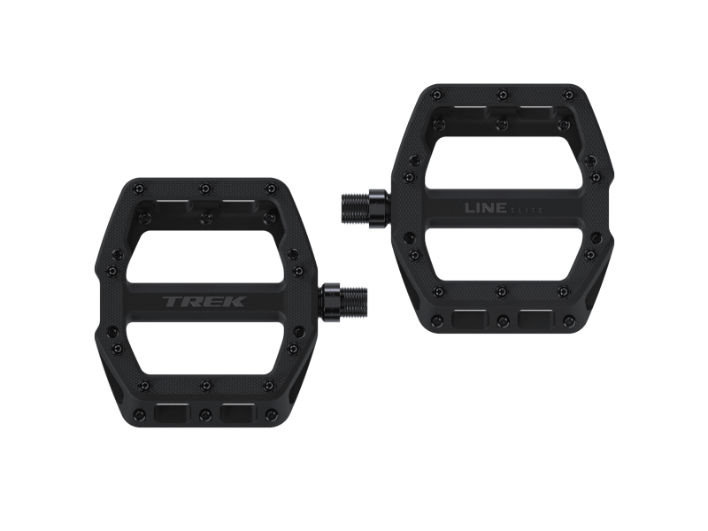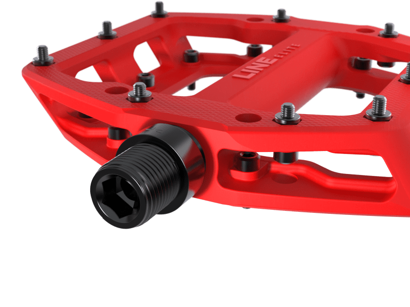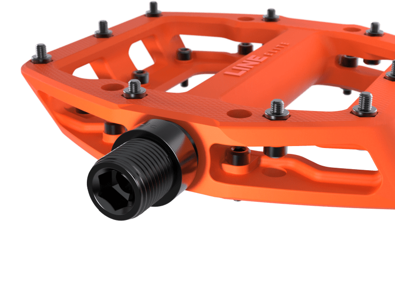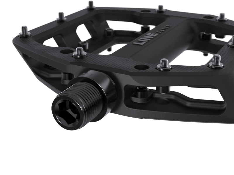 From enduro to dirt jumpers, many riders prefer flat pedals, but no matter where you ride, you'll appreciate the benefits of the Line Elite MTB pedal. It features a rugged nylon body and virtual-concave platform with replaceable traction pins, so every time you place your foot your shoe stays put.