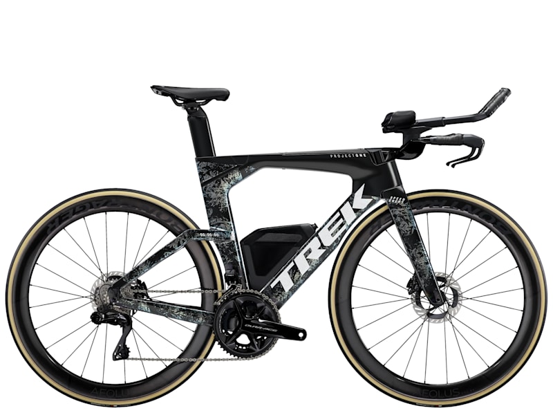 Ultra-lightweight 800 Series OCLV Carbon frame, drag-reducing Kammtail Virtual Foil (KVF) tube shaping, Speed Concept full foil carbon fork, road-smoothing IsoSpeed, integrated fuel storage, hydration, and flat kit storage, Shimano Dura-Ace wireless electronic 12-speed drivetrain, fully integrated handlebar and stem, Bontrager Hilo Pro Carbon triathlon-specific saddle for an aggressive aero position, disc brakes for reliable stopping power, and aero Bontrager Aeolus RSL 51 OCLV Carbon wheels.