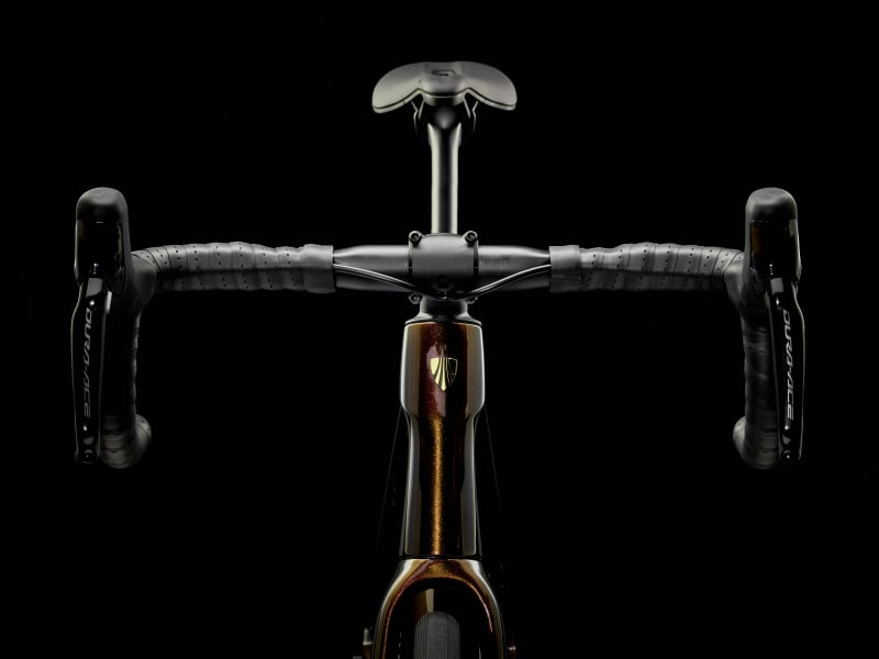 Our highest-end Domane carbon frame, with the meticulous shifting that comes only from wireless Shimano Dura-Ace. You're getting tech that provides a real advantage in comfort, reliability, and speed during all-day adventures, competitive group rides, or long races.