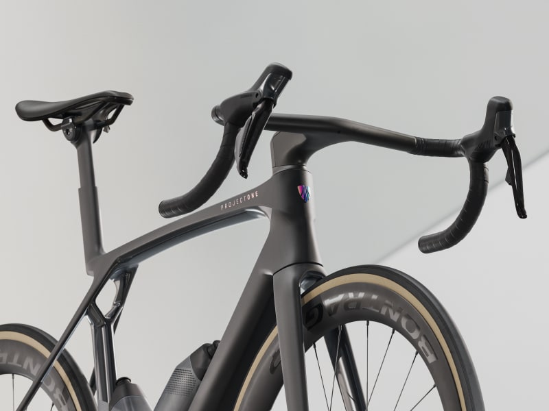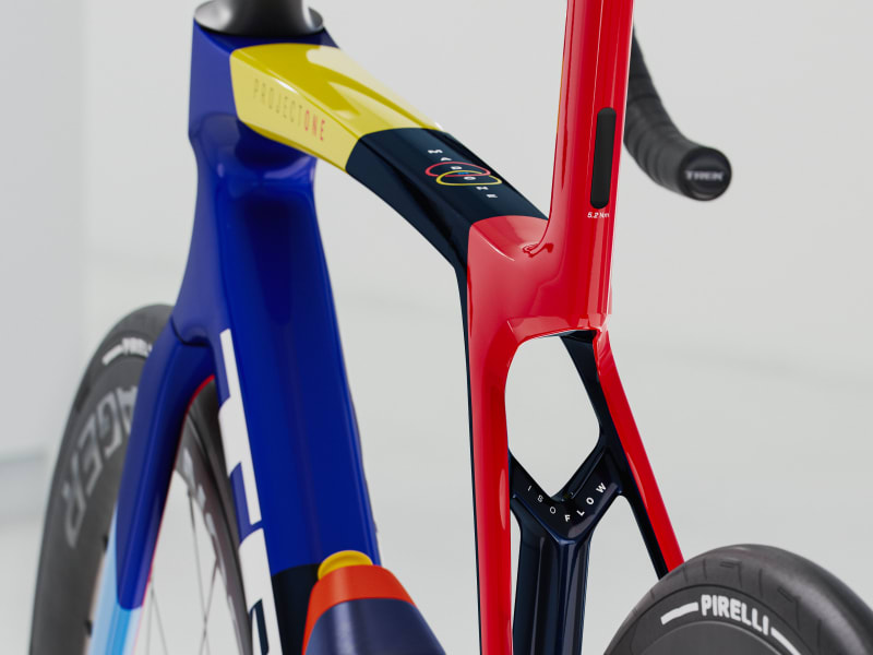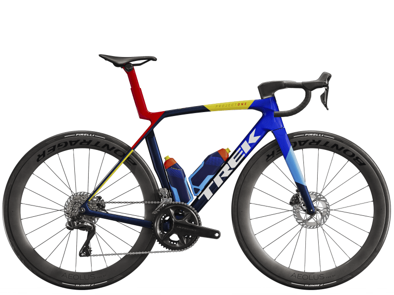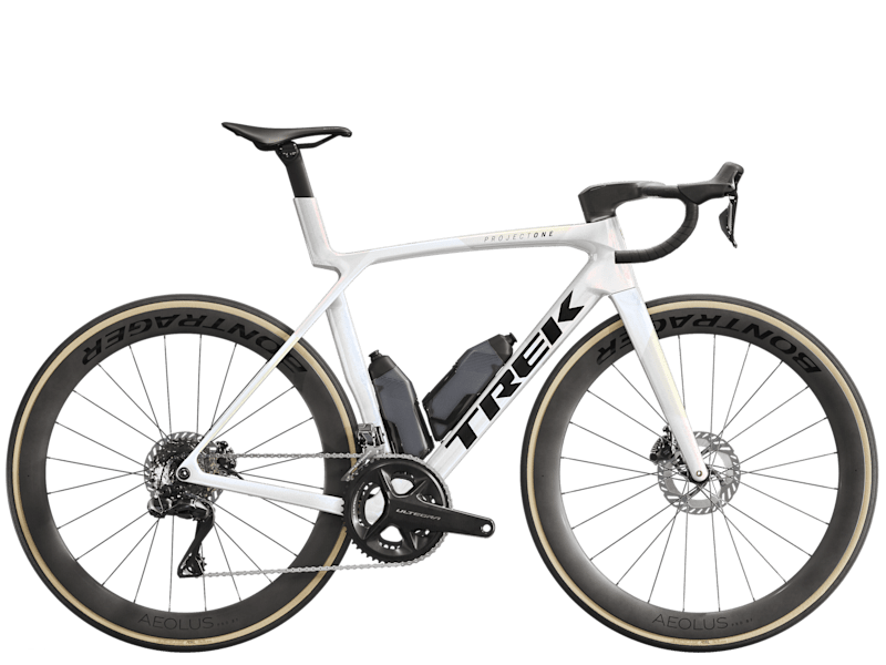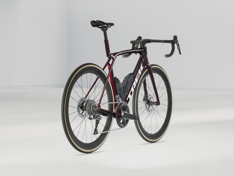 An insanely light frame made of our highest-level 900 Series OCLV Carbon with aero tubing and IsoFlow comfort technology, and RSL Aero Bottles and Cages that save watts. A 2x12 Shimano Ultegra Di2 groupset for lightning-fast shifting that's completely customizable. A universal derailleur hanger so you can get a replacement anywhere. Plus, it's topped off with Bontrager Aeolus Pro 51 tubeless carbon wheels and a Trek Aero RSL one-piece bar/stem.