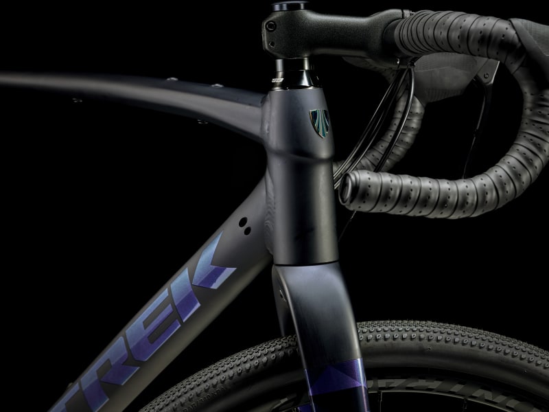 A responsive 300 Series Alpha Aluminum frame, hidden cables that won't interfere with bags, integrated rack, fender, and frame bag mounts, a 1x11 speed SRAM Apex drivetrain for smooth shifting on punchy climbs and variable terrain, mechanical disc brakes for ease of stopping quick in all conditions, tubeless ready rims, and wide Bontrager Girona Pro 700x42c gravel tires for added comfort and traction.
