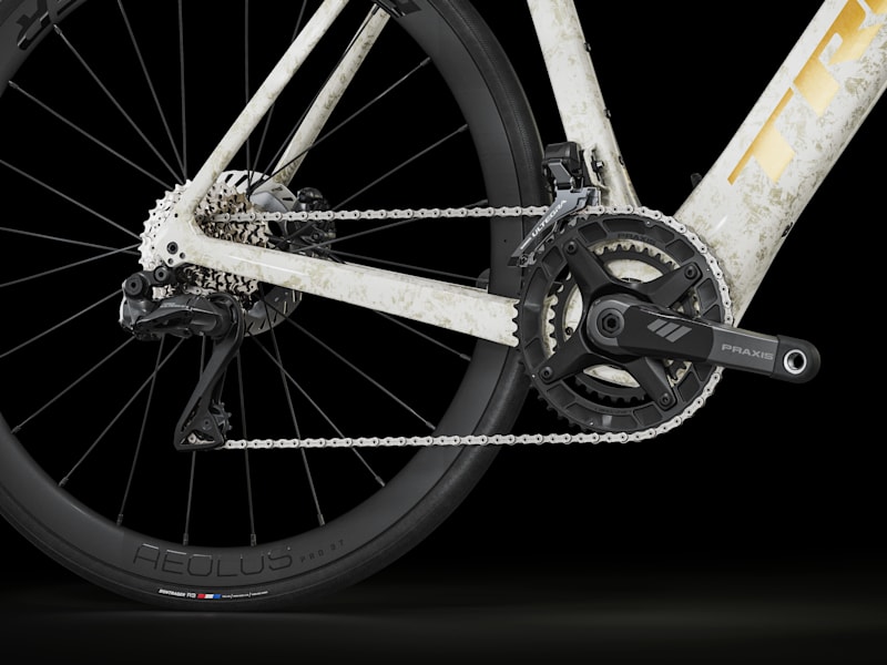 A supremely light 800 Series OCLV Carbon frame with rear IsoSpeed. A powerful 50Nm TQ harmonic pin ring motor that assists up to 28mph, a 360Wh integrated battery, an integrated smart LED display, and discreet hood-mounted controls for toggling through assist modes. Aeolus Pro 37 OCLV Carbon wheels, Shimano Ultegra 2x12 Di2 wireless electronic drivetrain, carbon cranks, a vibration-absorbing Bontrager Pro Iso-Core handlebar, and a RCS Pro stem that fully integrates your cables for a sleek look.